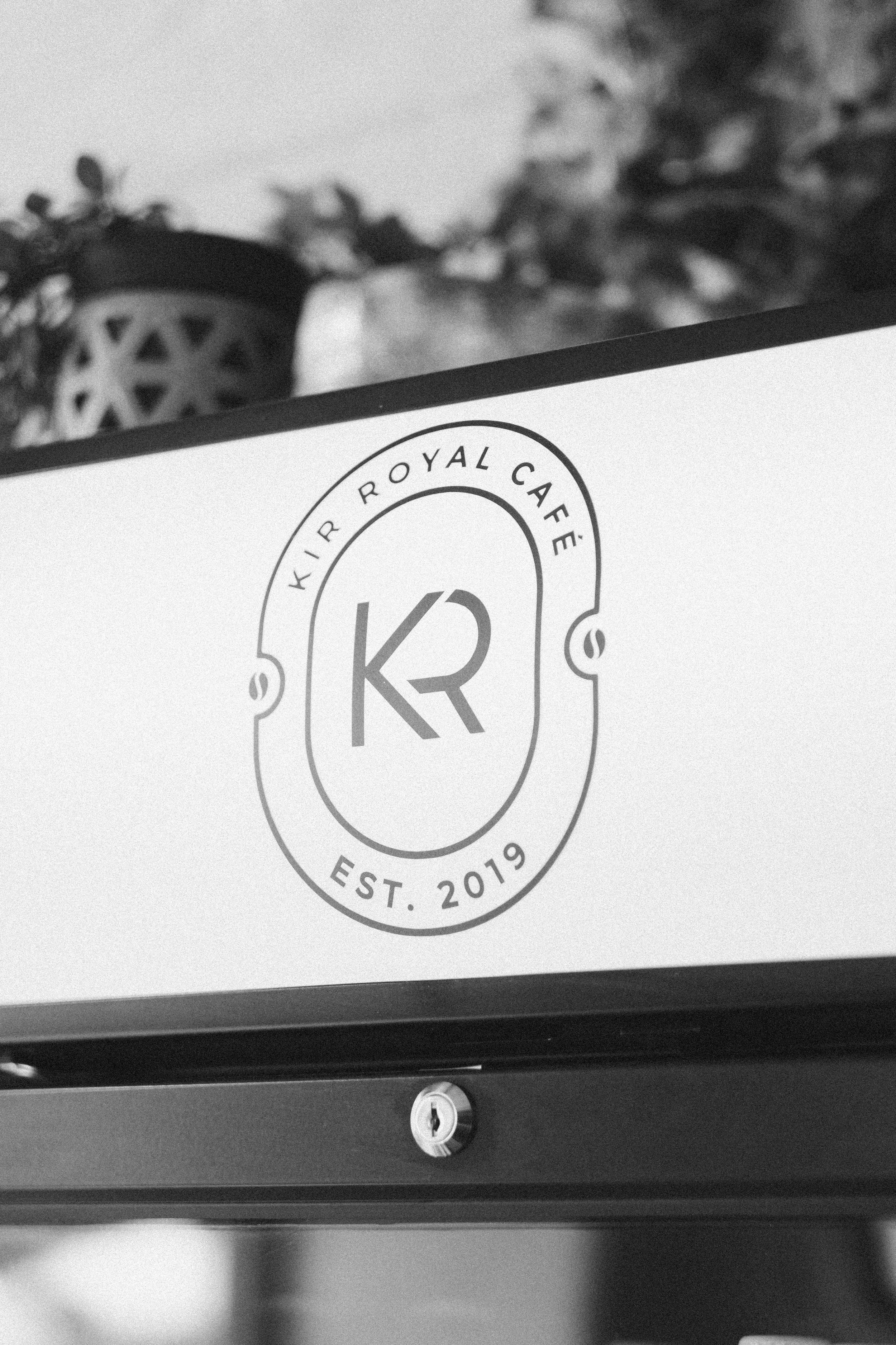 Close-up of a sign with the logo and text 'KIR ROYAL CAFÉ' and 'EST. 2019'. View fullsize